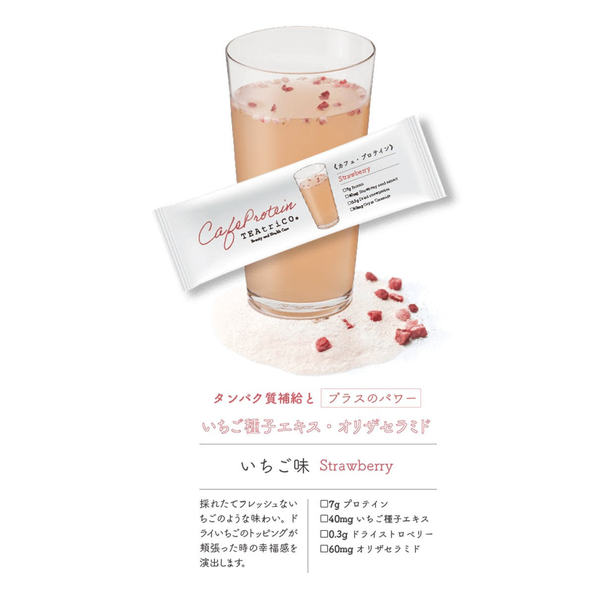 商品名:ティートリコ カフェ プロテイン いちご 1包(13.5g)