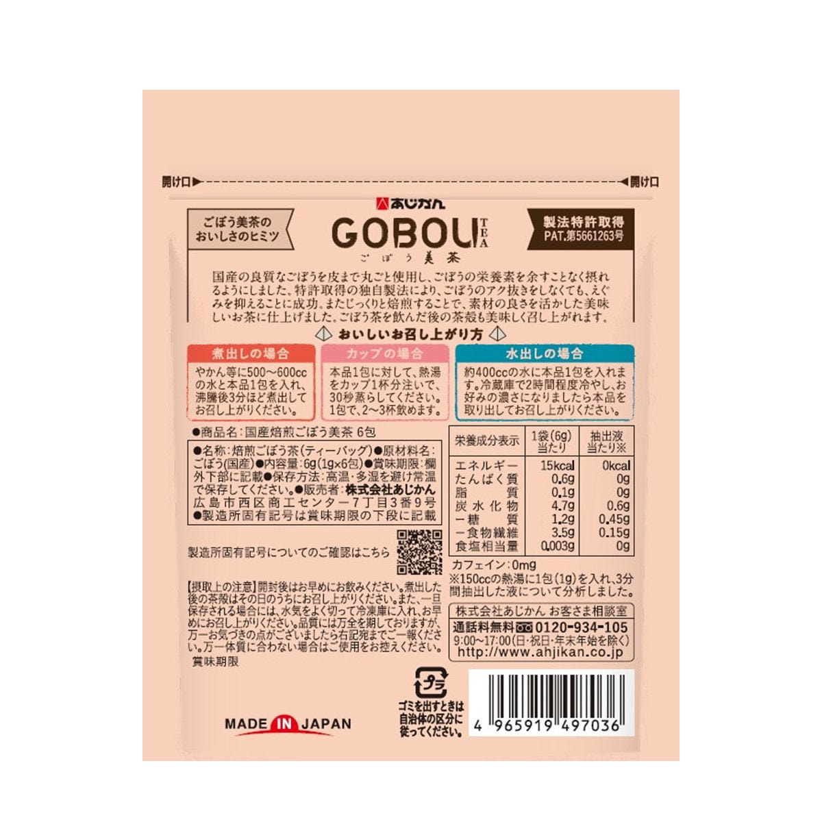 商品名:あじかん 国産焙煎 ごぼう美茶(6包)