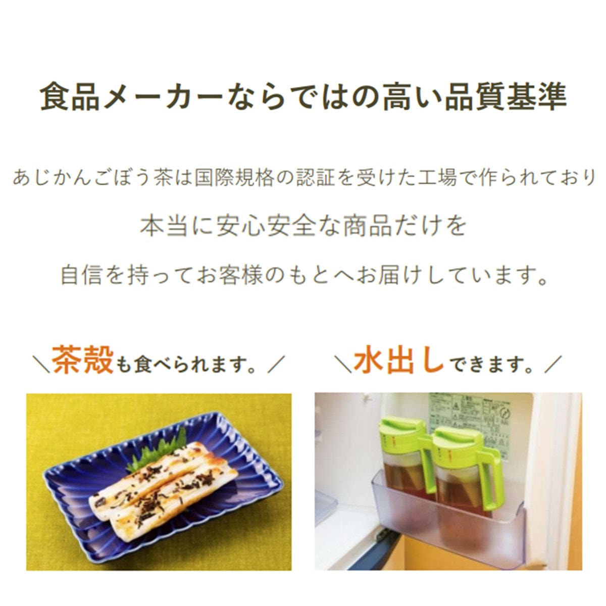 食品メーカーならではの高い品質基準で、飲んだ後の茶殻も食べられます。